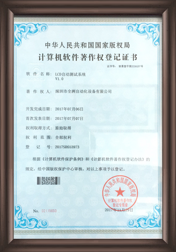 深圳市全洲自動化設備有限公司是一家集研發、生產、銷售為一體的國家高新技術企業,擁有一支強大、資深的技術研發團隊,及完善的生產、銷售服務隊伍。公司致力于LCD和半導體行業的智能制造,先后推出了全自動貼片、裝腳、點膠、固化、切腳流水線,全自動LCD AOI測試機、COG/COB自動AOI測試機、TFT多畫面測試機。并破解行業難題,研發了分辨率達微米級的LCD整模圖像檢測機等高端設備,可應用于LCD/TFT/集成電路/晶圓檢測等領域,有效提升生產和測試效率,保障產品品質。受到了新老客戶的歡迎和好評,與業內眾多知名企業建立了長期合作伙伴關系。公司秉承“誠信經營、科技創新”的經營理念和“團結、合作、進取”的企業精神,竭誠為客戶提供優質的產品,完善的技術服務!讓我們攜手,互利雙贏,共同發展,一起邁向企業美好的新未來、新坐標!